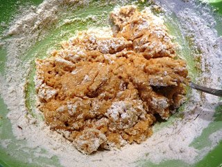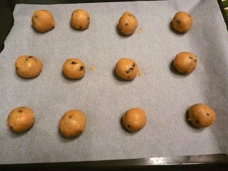 Metemos la masa en el frigorífico durante un par de horas por lo menos. Si podemos hacer la masa un día y hornear al siguiente, mucho mejor, porque los sabores se intensifican. Calentamos el horno a 180º. Sacamos la masa y con ayuda de una cuchara cogemos porciones con las que hacemos bolas de unos 4 cm de diámetro que iremos disponiendo sobre una bandeja de horno con papel sulfurizado. Tenemos que dejar bastante separación entre ellas para evitar que se peguen.