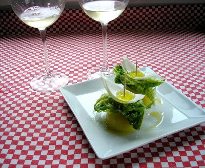 Sin duda, uno de los pintxos más sencillo en su ejecución y más humilde por sus ingredientes. Tanto es así que el chorrete de aceite con el que se aliña supera en precio al conjunto de la banderilla. Como sucede en estos casos, existen al menos dos versiones sobre su nombre: que sus ingredientes son comida de grillos (al menos la lechuga, que yo recuerde), o bien que el “cri cri” que suena al masticarlo recuerda al canto del popular insecto. Reflejo de una cocina de pocos recursos y mucho ingenio parece que el grillo se creó en las épocas de hambruna de la posguerra. Poco a poco ha ido desapareciendo de las barras de los bares.