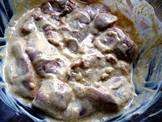 En primer lugar ponemos a macerar el pollo con todos los ingredientes del adobo. Mezclamos bien y metemos en el frigorífico, donde debe estar al menos un par de horas.