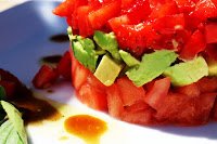 TARTAR DE TOMATE, AGUACATE Y FRESAS
