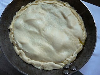 Cubrimos el molde con la masa quebrada, recortando el sobrante, pero dejando un centímetro más o menos, que iremos remetiendo hacia los bordes del molde, ayudándonos con una cuchara.