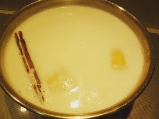 Ponemos a calentar la leche con la canela, la corteza de limón y el azúcar. Tenemos unos 15 minutos a fuego medio con cuidado de que no hierva. Dejamos templar.